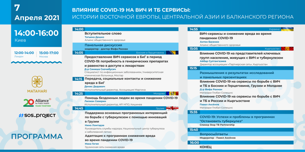 7 апреля состоится онлайн-дискуссия по обсуждению влияния COVID-19 на программы по ВИЧ/ТБ в странах региона ВЕЦА и Балкан.