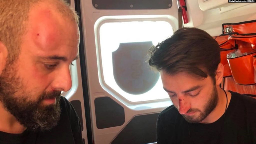 По сообщениям местных СМИ, перед запланированным маршем в столице Тбилиси, был совершен ряд нападений. Представителей СМИ в центре Тбилиси забросали бутылками и палками. Пострадали более десяти журналистов, – пишет грузинская служба «Радио Свобода». Противники Марша Достоинства также сняли флаг Евросоюза у здания парламента Грузии и разгромили палатки оппозиционеров. Часть митингующих переместилась к офису организации «Сирцхвилия» и выбила входную дверь.